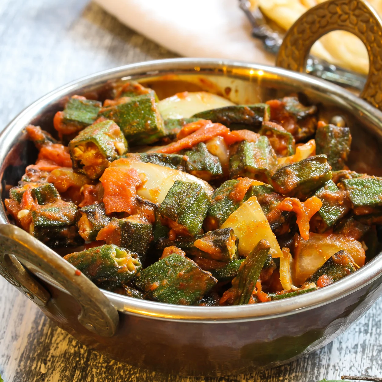 A Punjabi roadside favorite! Fresh okra stir-fried with caramelized onions, tangy tomatoes, and a blend of bold spices. A light, flavorful, and perfectly seasoned dry curry